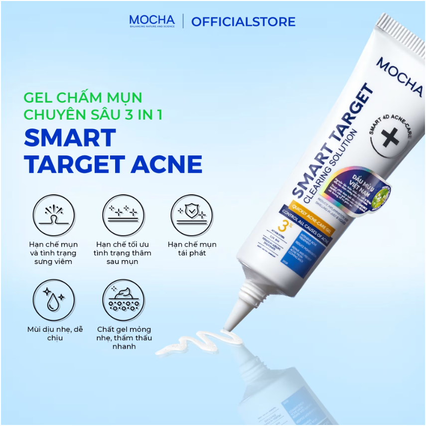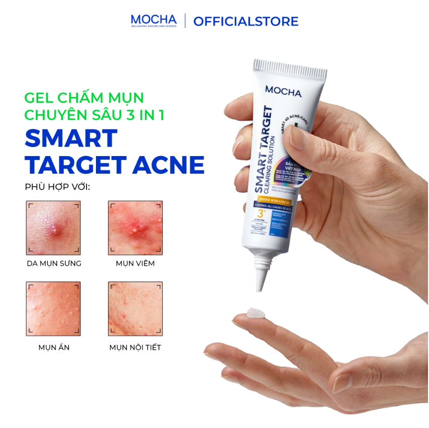 - Bước 2: Lấy một lượng sản phẩm kem thoa mụn vừa đủ chấm/thoa lên nốt mụn, vùng da mụn đang viêm, sưng.