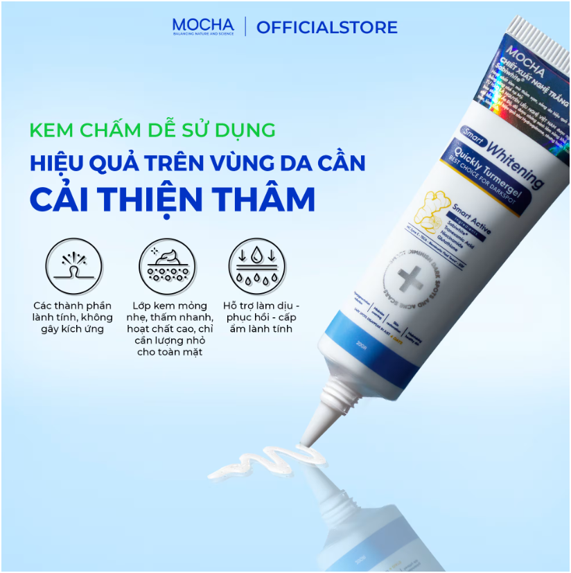 - Bước 2: Lấy một lượng kem vừa đủ thoa đều lên da hoặc có thể chấm lên vùng thâm mụn. Massage nhẹ nhàng để kem thấm sâu vào da.