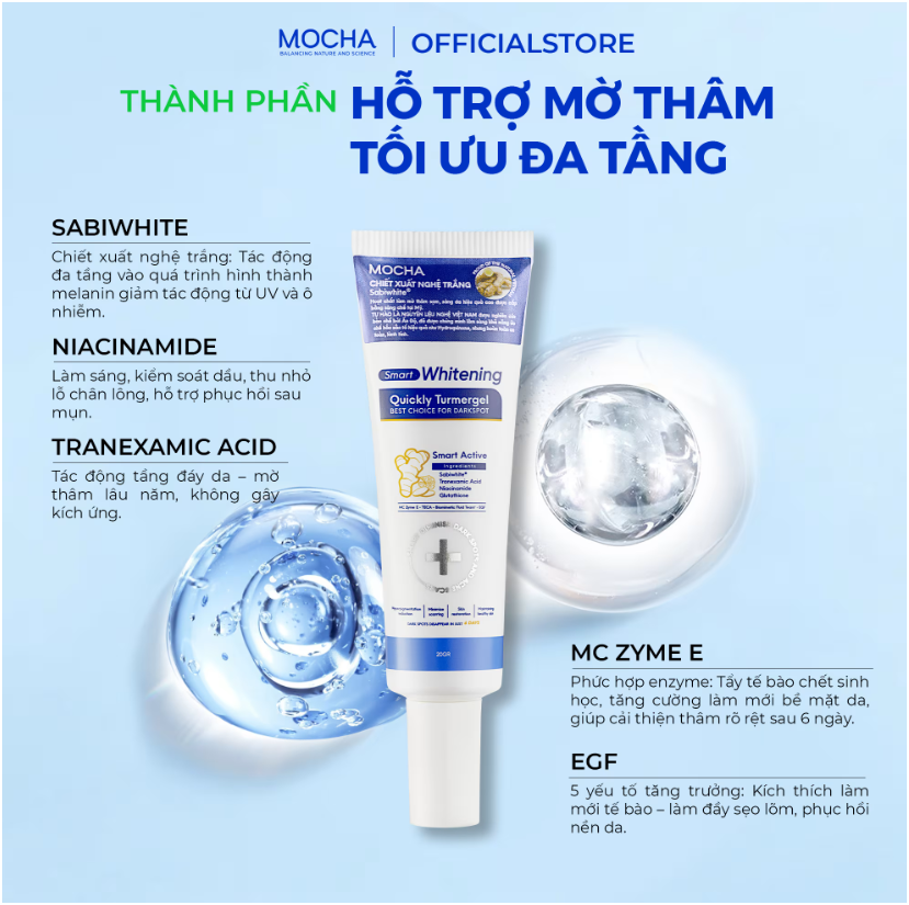 - Hỗ trợ làm mờ thâm mụn, dưỡng sáng da và đều màu hơn.