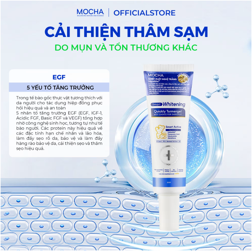 - EGF: Ngăn ngừa lão hóa, làm đầy sẹo rỗ da, bảo vệ và tái tạo các vết sẹo, trị thâm sẹo hiệu quả.